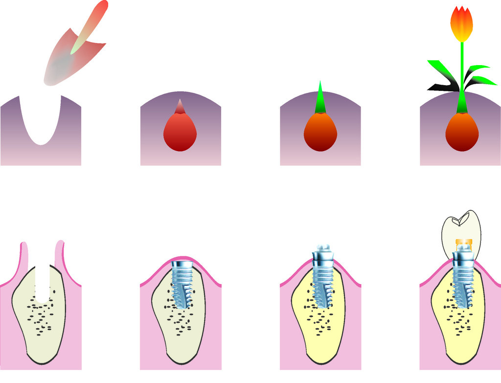 所以,种植牙需要分两步走,第一步,是种植牙根,第二步,是种植牙体。两步完成后,牙齿就种植好了。